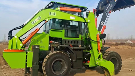 连接复合动作一拖二操作手柄,简介易操作由于它具有共同的结构,前端是装载设备,后端为发掘设备。在施工时,操作手只需求翻滚一下座椅,就可以结束从装载机到发掘机的改动